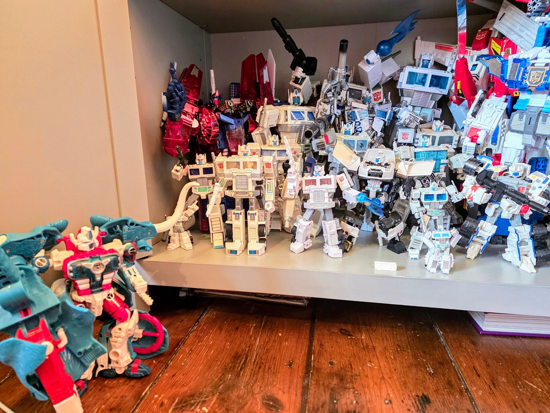 That latter question is the hardest to answer, if not philosophically then at least practically. For starters, like anything that circles the stinking drain of nostalgia, Transformers by and large have value. If they’re vintage ones in decent condition, they’re even accruing value at an alarming rate, as more and more of my generation hit their mid-life crises and yearn for their carefree yesterdays.